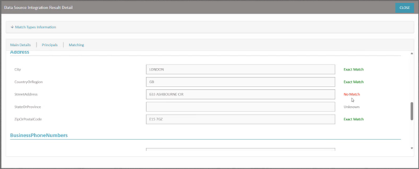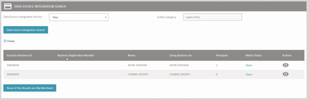 Triggering the search will load the results that VISA processed with the data submitted from the record. The results are shown within KYCP, avoiding the need to have to access and use different systems.